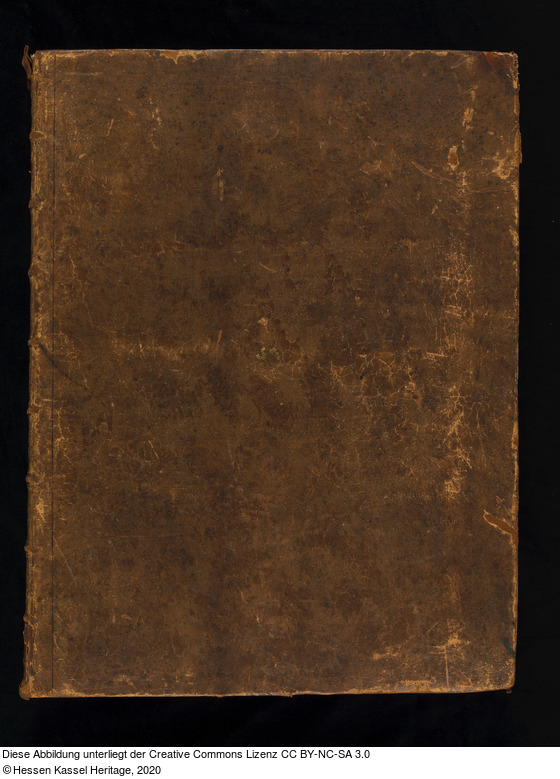 Der Band ist in Leder gebunden. Der goldgeprägte Rücken mit acht Bünden trägt ein rotes Titelschild. Die Buchdeckel sind mit einem goldgeprägten doppelschwänzigen Löwen mit Krone und den Initialen W. L. versehen. Hallo weist dem Stempel Wilhelm VIII. von Hessen-Kassel zu. Vgl. Rudolf Hallo: Das Kupferstichkabinett und die Bücherei der Staatlichen Kunstsammlungen zu Kassel. 2. veränderte Aufl., Kassel 1933, S. 18, Nr. 190; 159.