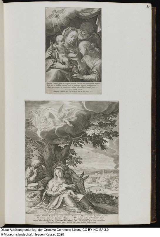 | Hist. Inhaltsverzeichnis: | 13. | Maria mit dem Kind ... Jsaiae LXI. / Eine Flucht in Aegypten ... redeunte salus | Jo. ab Ach pinx. 1591. J. Sadeler / sc. / Chph. Schwartz pinx. Jo. Sadeler sc. |