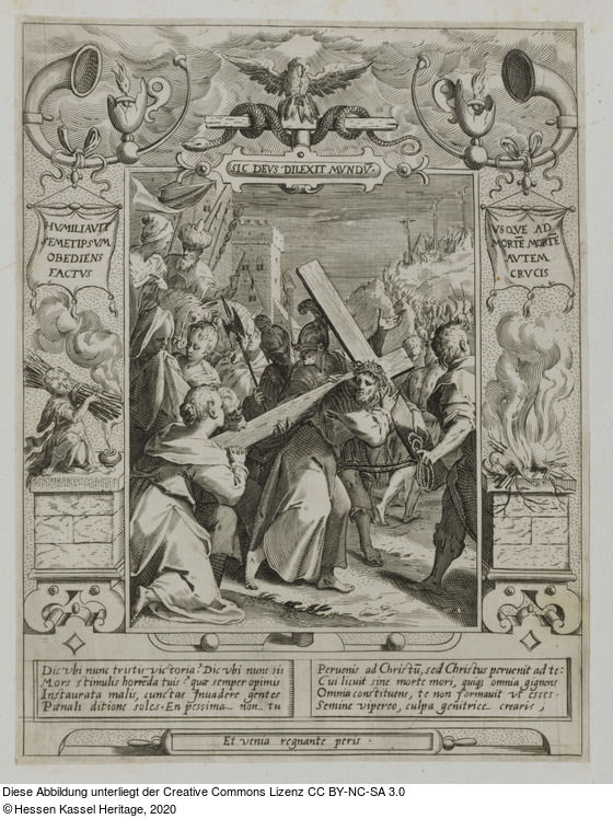 | Hist. Inhaltsverzeichnis: | 29. | Christi Ausführung zum Kreutze; oben: Sic Deus dilexit mundum; unten 8 lat: Verse: / Dic ubi –– regnante peris. |