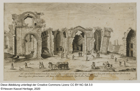 Die mit 2-38 nummerierten Blätter der Serie sind Kopien nach der von E. Du Pérac gestochenen Serie "I Vestigi Dell'Antichità Di Roma", die 1575 in Rom publiziert wurde. Vgl. Hollstein Dutch and Flemish XXI.41. |