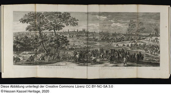 Gedruckt von zwei Platten, zusammengesetzt aus zwei Bogen. Nach einem Werk von Adam Frans van der Meulen. Die Platten wurden 1674 fertiggestellt. Vgl. Richefort, Isabelle: L'oeuvre gravé de Van der Meulen, in: A la gloire du Roi. Van der Meulen, peintre des conquêtes de Louis XIV, Paris 1998, S. 323. |