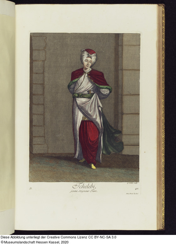 in der Platte: G. Scotin sculp.; Tchelebi, jeune Seigneur Turc.; JB [ligiert]; 40.; Avec Privil. du Roi.;
