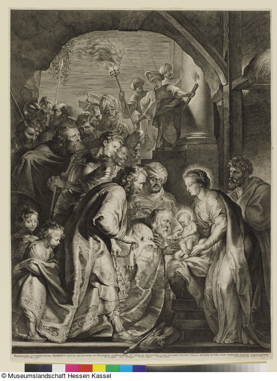 Sekundäre Ikonographie: 73B57 die Anbetung durch die Heiligen Drei Könige: sie reichen dem Christuskind ihre Geschenke (Gold, Weihrauch und Myrrhe) Sekundäre Ikonographie: 73B82 die Heilige Familie zusammen mit anderen Personen Sekundäre Ikonographie: 73B28 das Christuskind in der Krippe Sekundäre Ikonographie: 22C311 Nimbus, Heiligenschein (als Strahlen, die von Personen ausgehen) Primäre Ikonographie: 41B32 Fackel Primäre Ikonographie: 41D221(TURBAN) Kopfbedeckung: Turban Primäre Ikonographie: 48C161 Säule, Pfeiler (Architektur) |