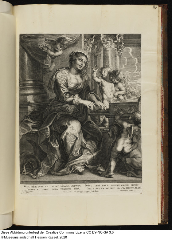 in der Platte: FICTA PRIOR POST HAX SILEAT MIRACLA VETVSTAS; NVNC ORBI MAIOR SVRREXIT CÆCILIS ORPHEO: ORPHEVS ET SILEAT SAXA TRAHENTE LYRA. ILLE FERA; CÆLVM HÆC AD SVA PLECTRA-TRAHIT; P. P. Rubens pinxit; S. à Bolswert; Cum.gratia.et.priuilegio.Regis. J.de.berti.; Gillis Hendricx excudit.;