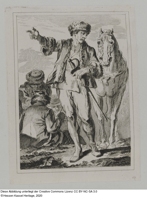 | Hist. Inhaltsverzeichnis: | 81. | Ein Ungar in einem kurzen Pelz=Habit neben einem Pferde stehend, |