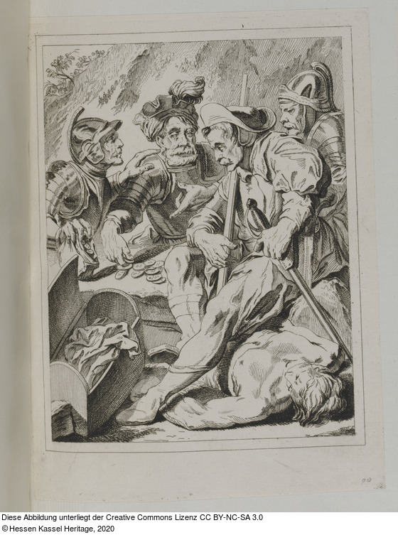 | Hist. Inhaltsverzeichnis: | 81. | Eine Gesellschaft von Räubern, welche eine Geldbeute unter sich / zu theilen scheinen, |