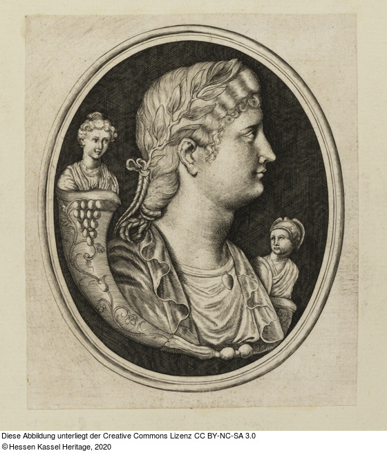 Vermutlich nach einer Zeichnung von Rubens. Zusammen mit "Alexander der Große" und "Mark Anton" von einer Platte gedruckt. Alle drei Kameen befanden sich ehemals in der Sammlung von Rubens und sind heute in Paris, Bibliothèque nationale de France, Cabinet des Médailles (Inv.-Nr. der hier kopierten Kamee: Camée.227). Zur Serie mit antiken Kameen vgl. Marjon Van der Meulen: Rubens. Copies after the Antique. Text. Corpus Rubenianum XXIII-1, London 1994, S. 132-142. |