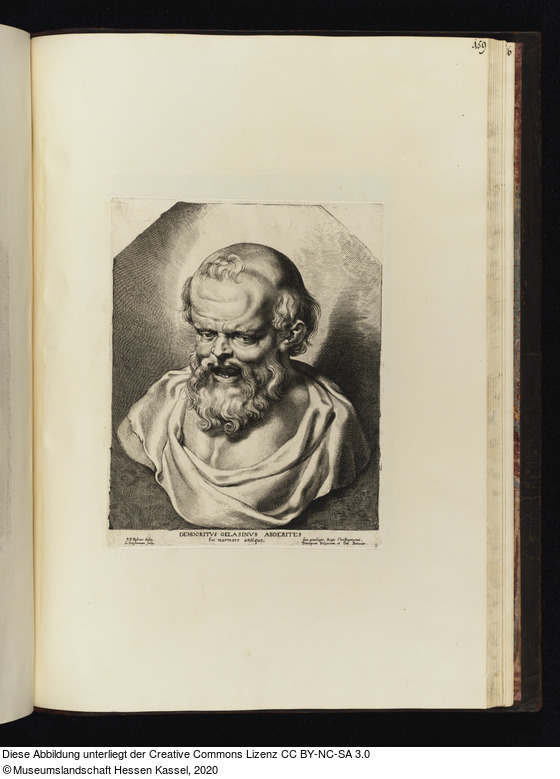 in der Platte: DEMOCRITVS GELASINVS ABDERITES. Ex marmore antiquo; P. P. Rubens delin. L. Vorsterman sculp.; Cum priuilegiis Regis Christianissimi. Principum Belgarum et Ord. Batauiæ;