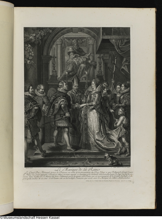 in der Platte: Rubens pinxit; I. Nattier delineavit. A. Trouvain Sculpsit.; Le Mariage de la Reine ... de Silleri Ambassadeur.; A Paris chez le S.r Nattier Peintre de l'Academie Royale rue Frementeau. Avec Privilege du Roy.;